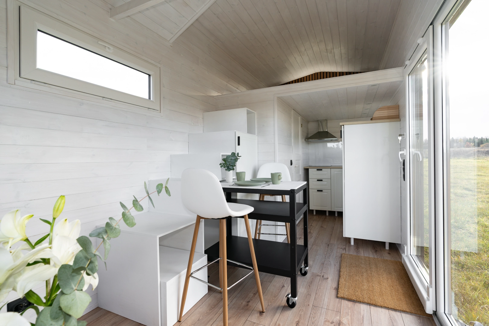Mökkivaunun voi tarvittaessa kuljettaa uuteen paikkaan, mikä antaa sinulle vapauden muuttaa asuinpaikkaa luopumatta kodistasi.
